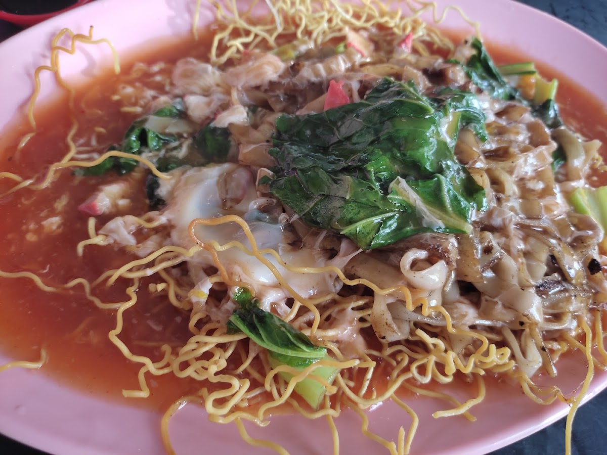 The café is best known for its kampua noodles, a Sarawak specialty that's hard to find at the prices Desa Damai maintains. Though prices have crept up from RM2 to RM3 in recent times, the meals remain among the most economical in Bintulu. Whether you prefer your kampua dry, with soy sauce or soup, or fried versions, the menu covers it with simple, unpretentious dishes. Alongside the noodles, items like laksa, mee goreng, and bubur ayam round out the selection, reflecting the no-frills, everyday comfort food that locals come for.